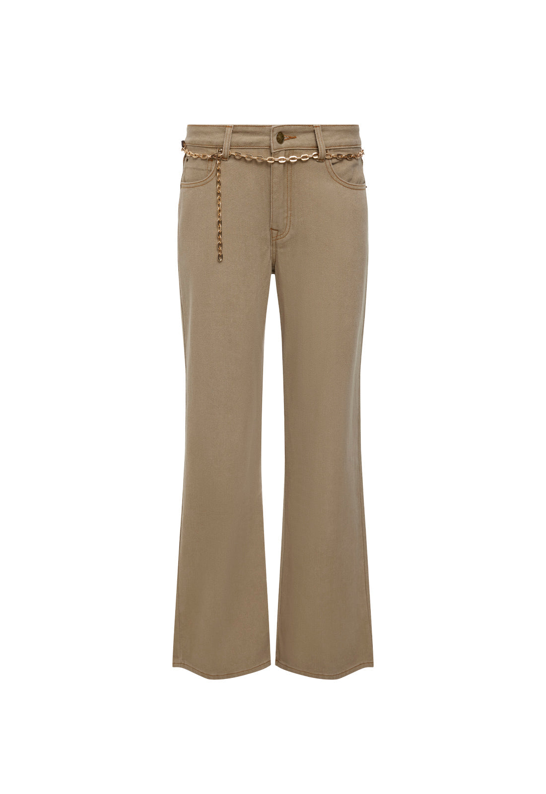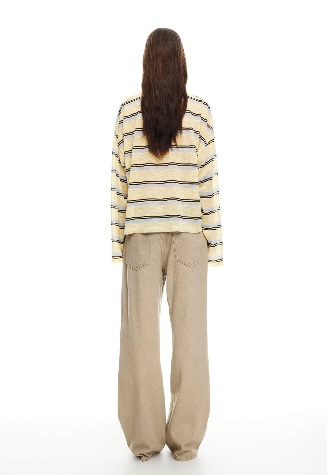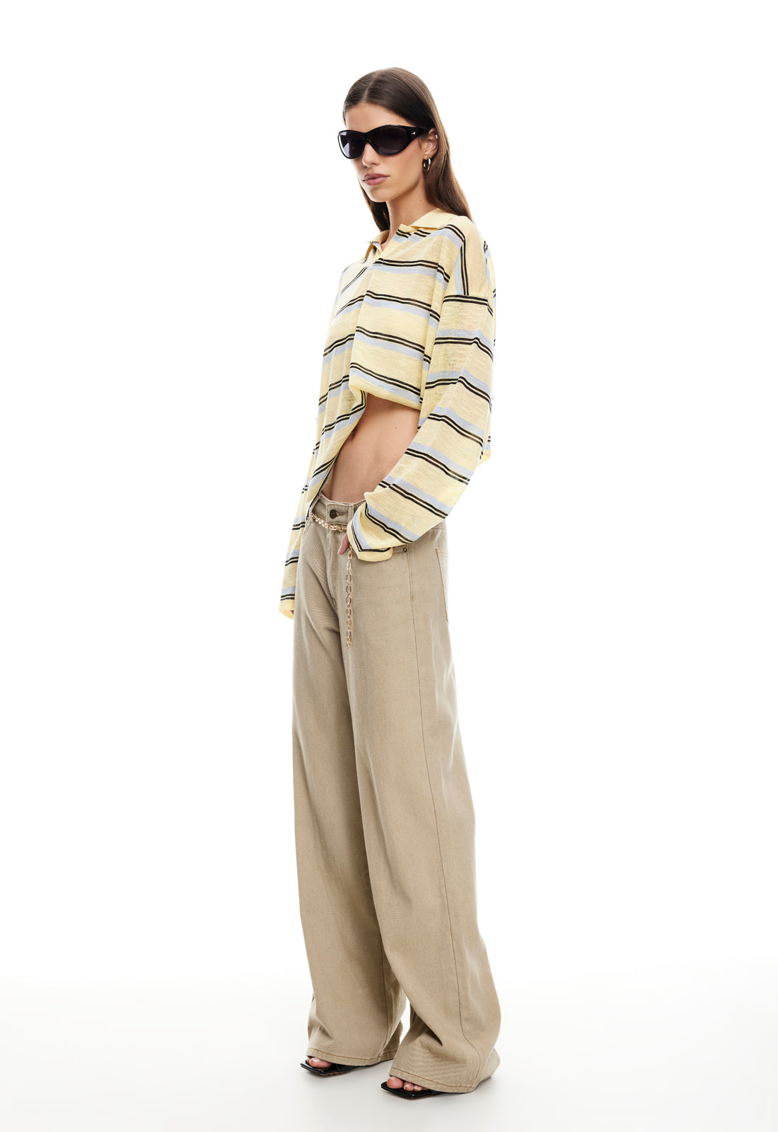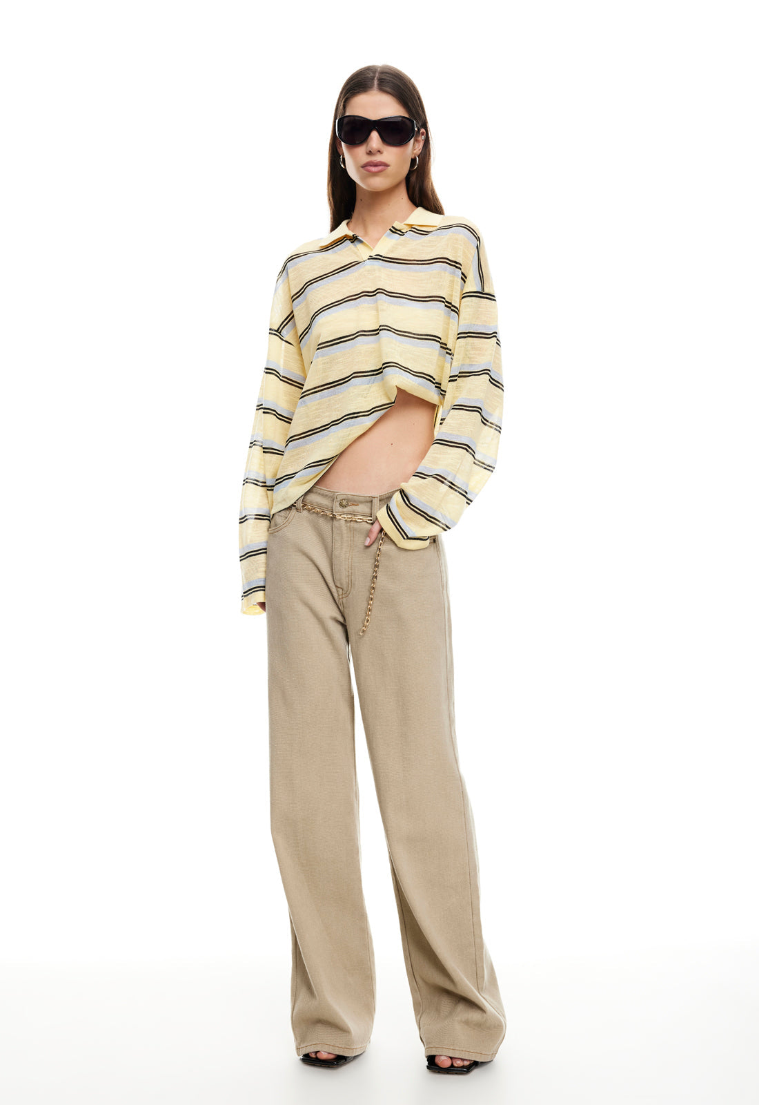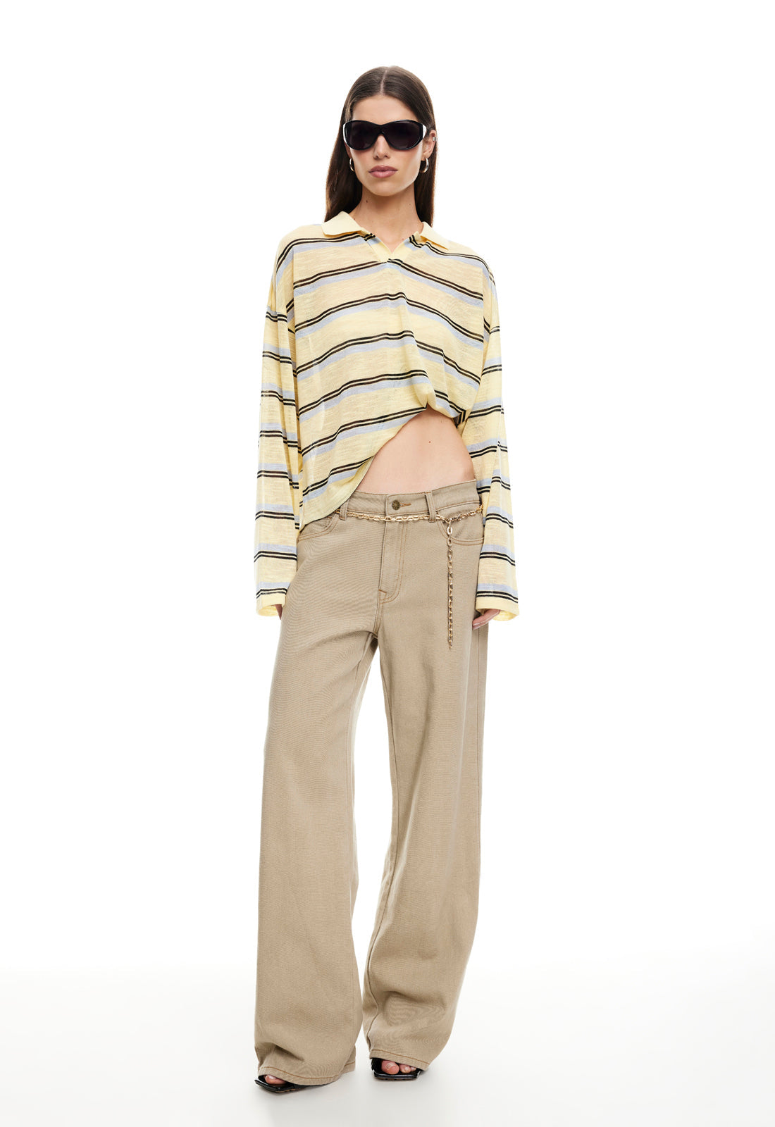 Crop top, silicon strip, folded-over pants, elasticated waistband, straight leg, mid-rise fit
