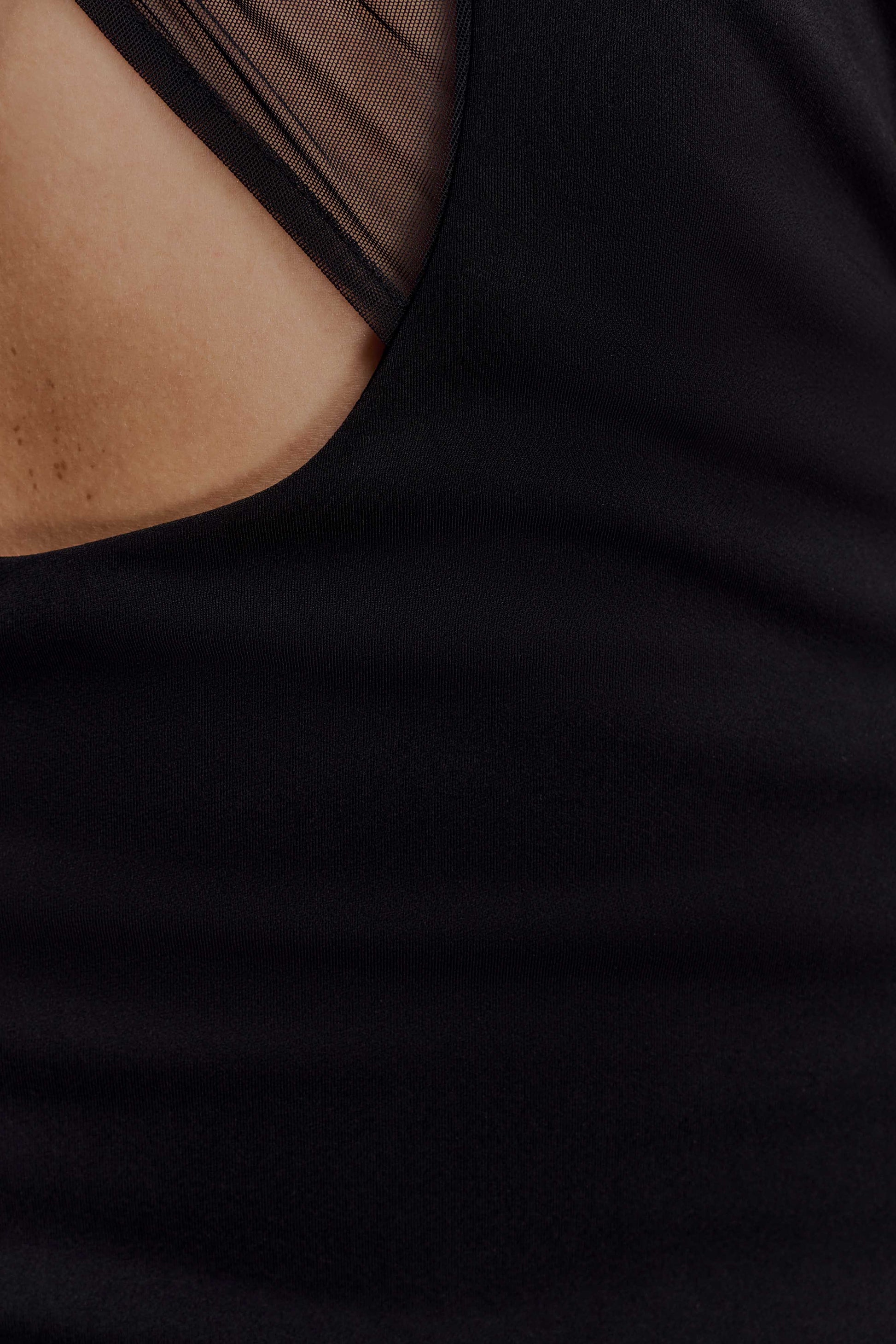 The AUBREE Crepe And Mesh Mini Dress is designed to captivate with its play on contrast and cut. Featuring a halter neckline with a plunging V and a back neck button closure, it’s detailed with a centre-front cut-out for bold allure. A fitted crepe bodice balances against gathered mesh panels at the skirt and front, adding movement and texture. Partially lined for coverage yet sheer in key places, this dress combines a sculpted fit with playful edge at a mini length.