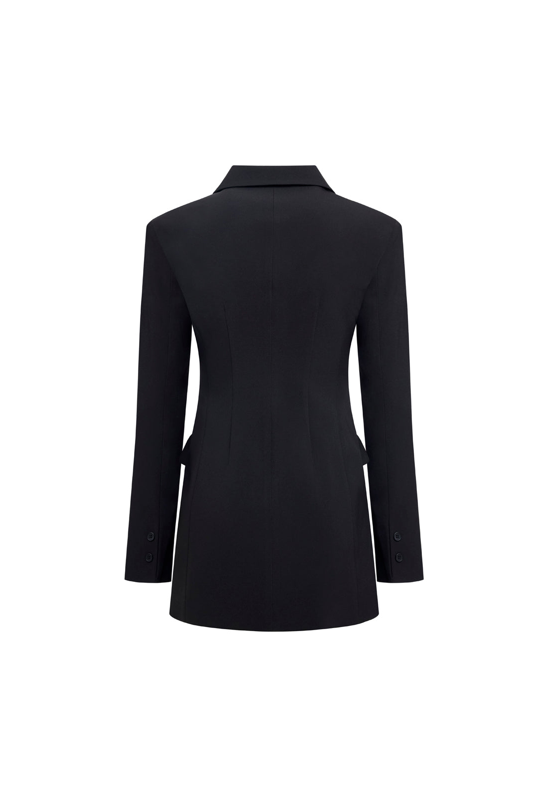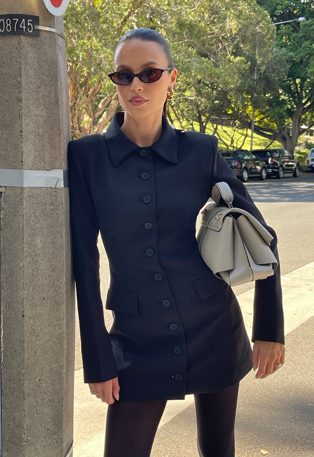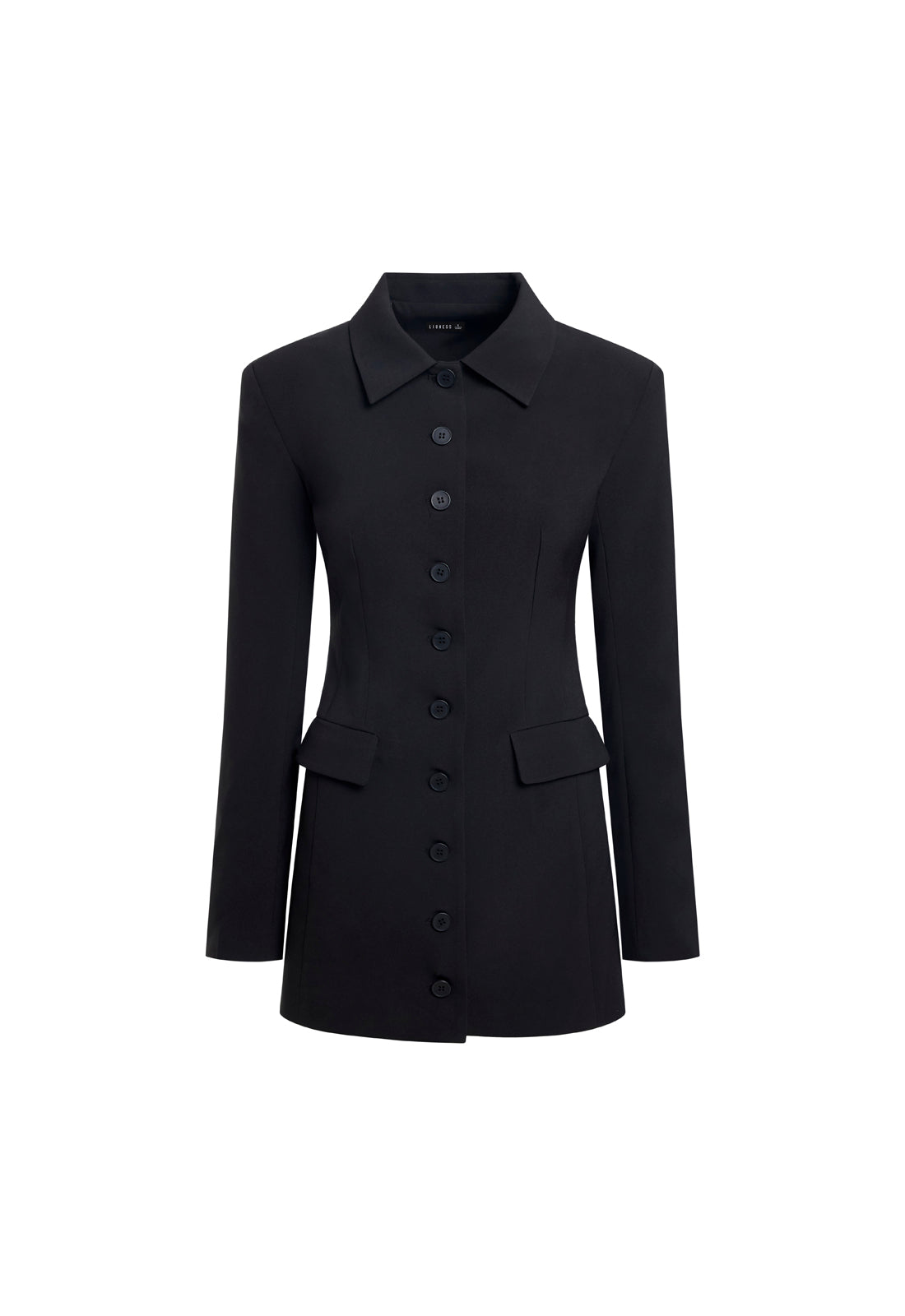 Classic, redefined.The ABBIE Strapless Suiting Mini Dress is a chic and sophisticated piece designed to make a statement. Featuring a straight neckline and strapless design, this dress exudes elegance and modernity. The double-breasted button design adds a touch of classic tailoring, while the centre back invisible zip ensures a seamless fit. Although the pockets are non-functional, they contribute to the dress's stylish aesthetic. Fully lined for comfort, the bodycon fit with a relaxed hem and the overlay panel at the bust create a flattering silhouette. Perfect for any occasion, this mini-length dress combines style and sophistication effortlessly.