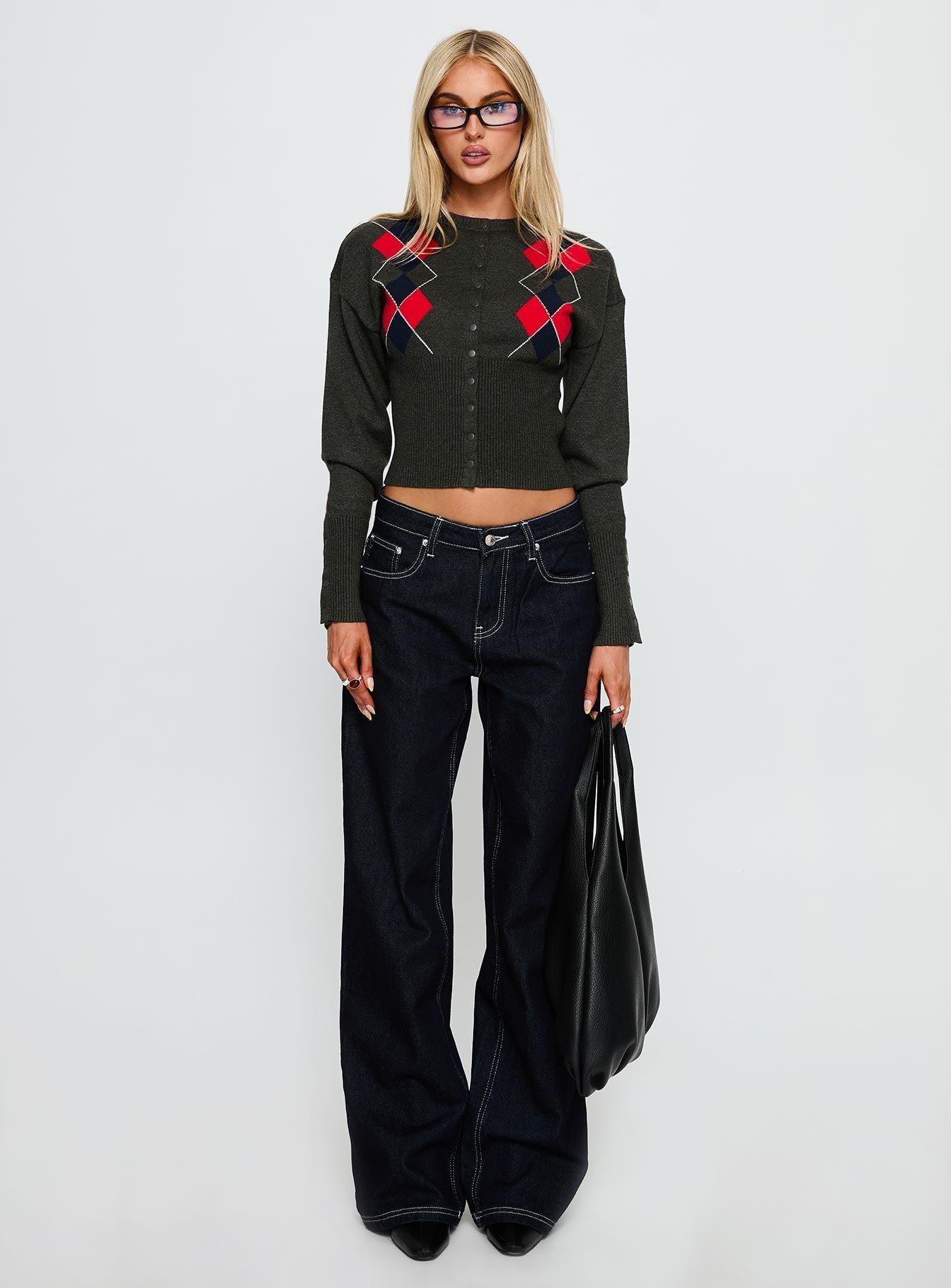 - Crew neckline, button-up closure, fitted waist, long sleeves