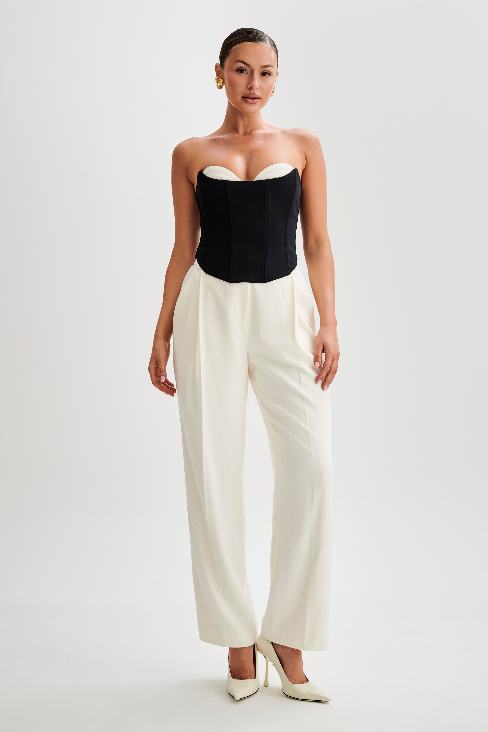 Introducing the OCEANE Contrast Suiting Strapless Corset, a stunning blend of classic elegance and modern sophistication. Featuring a corseted bodice with internal boning, this piece accentuates your figure with flattering precision. The princess neckline adds a touch of refinement, while the contrast bust cup detailing enhances its visual appeal. Designed with a rounded hem shape and a centre back zipper for ease of wear, this corset is both stylish and practical. Whether paired with trousers for a sleek office look or a skirt for a night out, the Oceane Contrast Suiting Strapless Corset promises to elevate your ensemble with its timeless charm and undeniable allure.