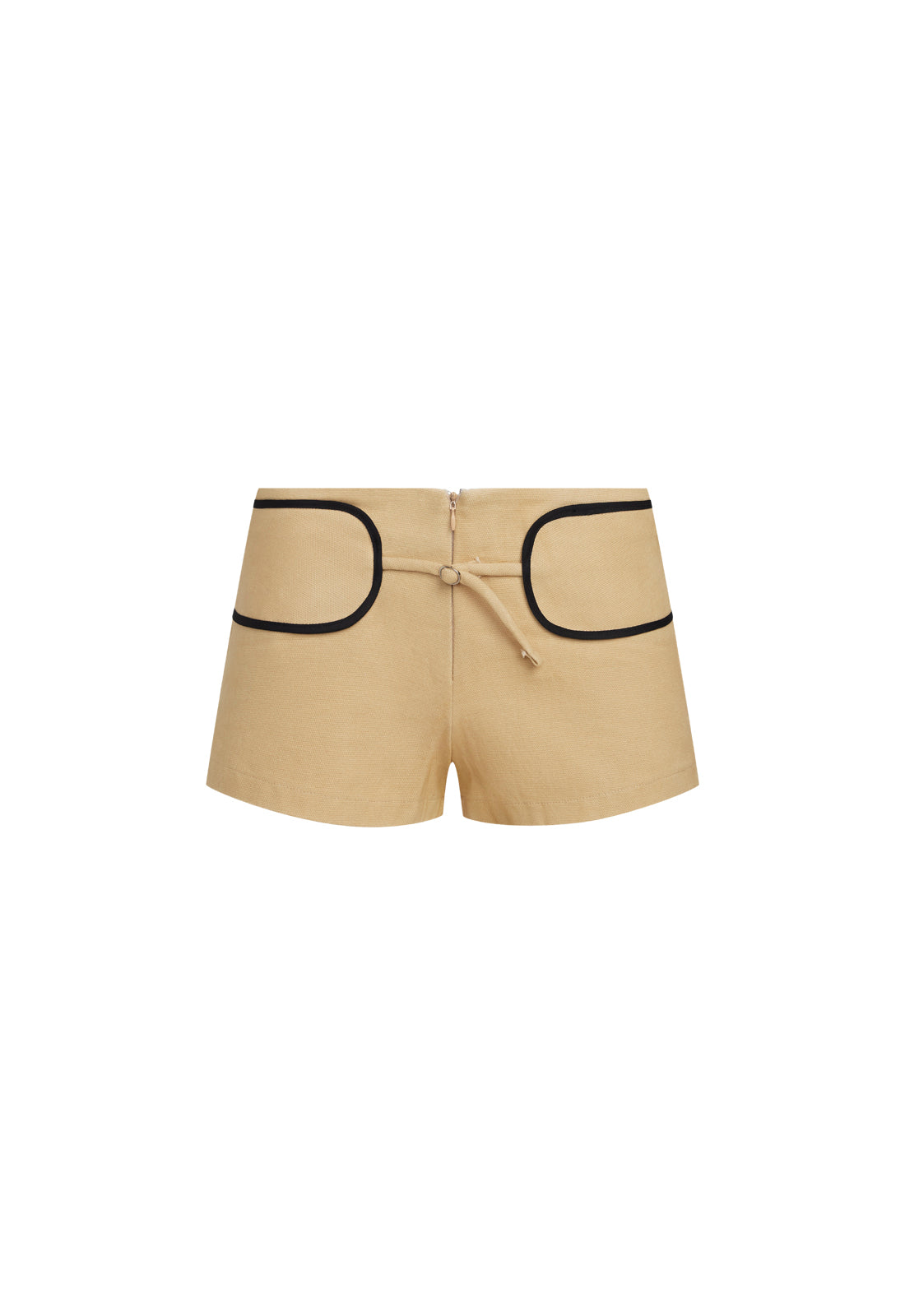 Crop top, silicon strip, folded-over pants, elasticated waistband, straight leg, mid-rise fit