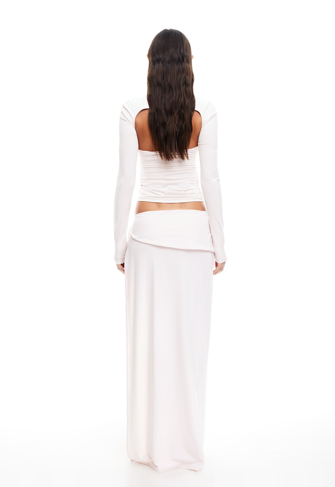 Crop top, silicon strip, folded-over pants, elasticated waistband, straight leg, mid-rise fit